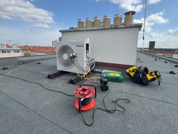 V létě se podkrovní byt dokáže změnit v doslova neobyvatelný prostor. Zákaznice z Prahy nás proto oslovila s předstihem, abychom společně navrhli řešení, které nabídne maximální komfort i během největších veder. Zvolili jsme systém multisplit – tři vnitřní jednotky WindFree™ Comfort napojené na jednu venkovní jednotku, kterou jsme bezpečně umístili na střechu pomocí gumových silentbloků.