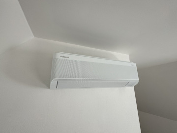 V podkroví cihlové přístavby rodinného domu jsme instalovali multisplitovou klimatizaci Samsung s výkonem 8 kW. Jedna venkovní jednotka napojená na dvě vnitřní WindFree™ Comfort jednotky zajišťuje chlazení dvou velkých místností, a v přechodných obdobích také pohodlné přitápění.