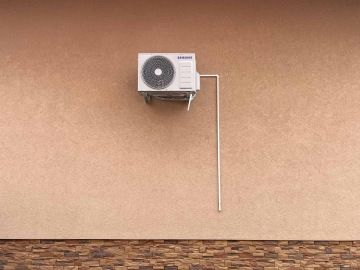 k venkovní jednotce. Ta je umístěna výše na fasádě, což umožnilo přímé propojení s vnitřní jednotkou bez nutnosti plastových lišt uvnitř místnosti. Výsledkem je estetické a funkční řešení bez narušení interiéru.