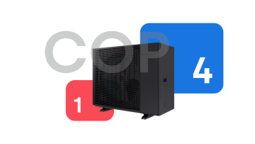 COP (Coefficient of Performance) vyjadřuje poměr mezi vyrobeným teplem a spotřebovanou elektrickou energií. Jde tedy o jednoduchý ukazatel účinnosti. Pokud má tepelné čerpadlo COP 4, znamená to, že z 1 kWh elektřiny vyrobí 4 kWh tepla. Tři kilowatthodiny přitom nezískává ze sítě, ale z okolního prostředí – ze vzduchu, země nebo vody. Pro srovnání: elektrokotel nebo přímotop má COP rovno 1. Z jedné kilowatthodiny elektřiny vyrobí jednu kilowatthodinu tepla. Právě v tomto rozdílu spočívá hlavní ekonomická výhoda tepelného čerpadla. Je však důležité zdůraznit, že COP je okamžitá hodnota při konkrétních podmínkách, nikoliv univerzální účinnost platná po celý rok.