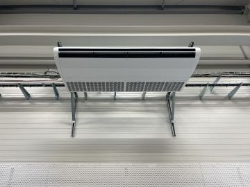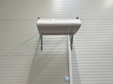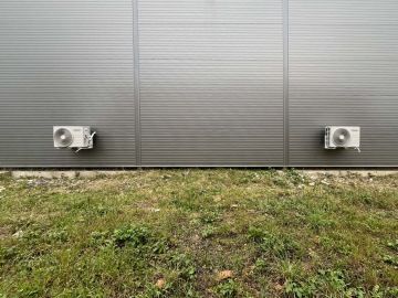 Venkovní jednotky jsme umístili na stěnu haly pomocí konzolí. Systém tvoří jedna venkovní jednotka s výkonem 10 kW napojená na jednu vnitřní jednotku a dvě venkovní jednotky o výkonu 5,2 kW, každá s jednou vnitřní jednotkou.