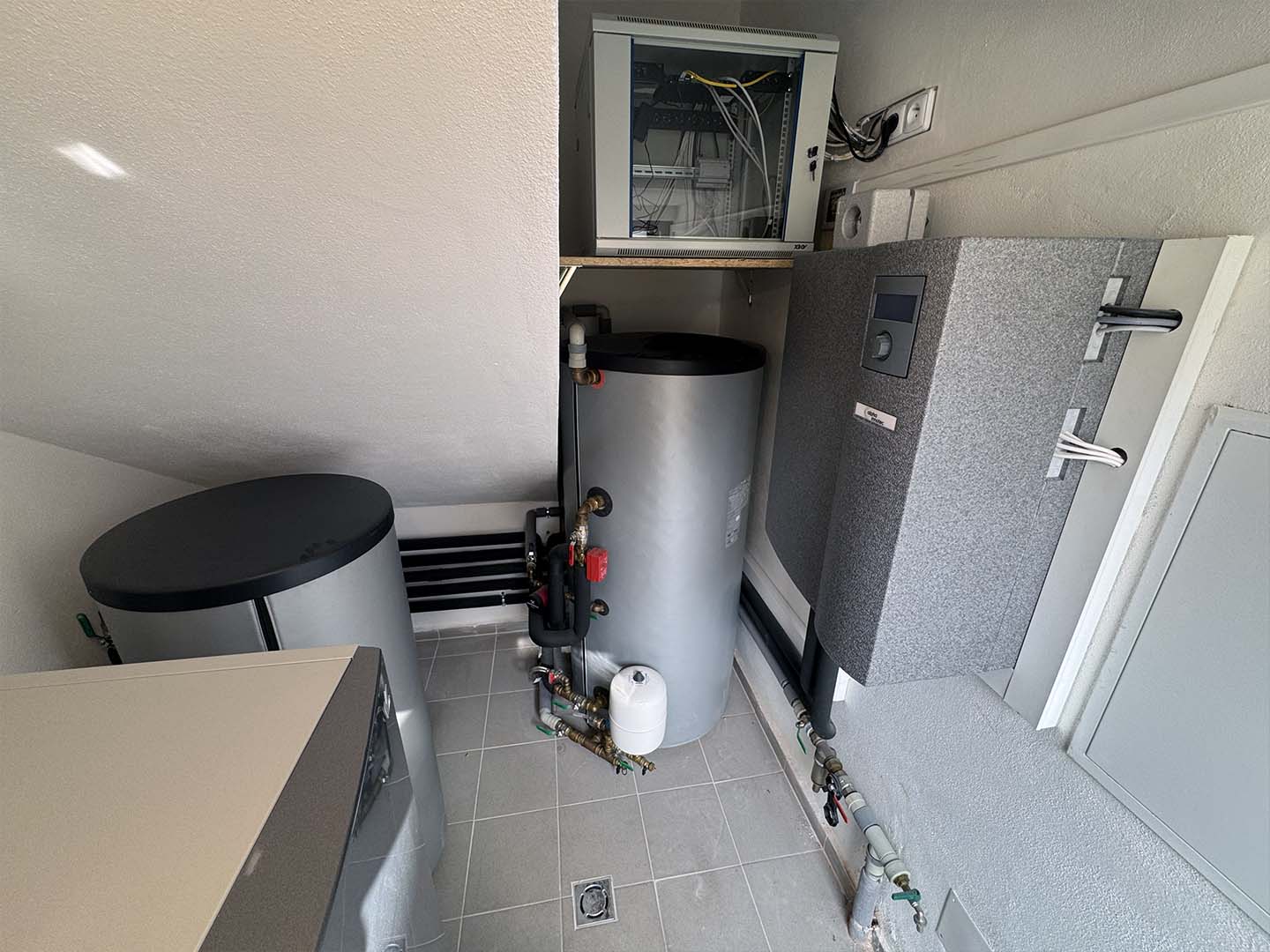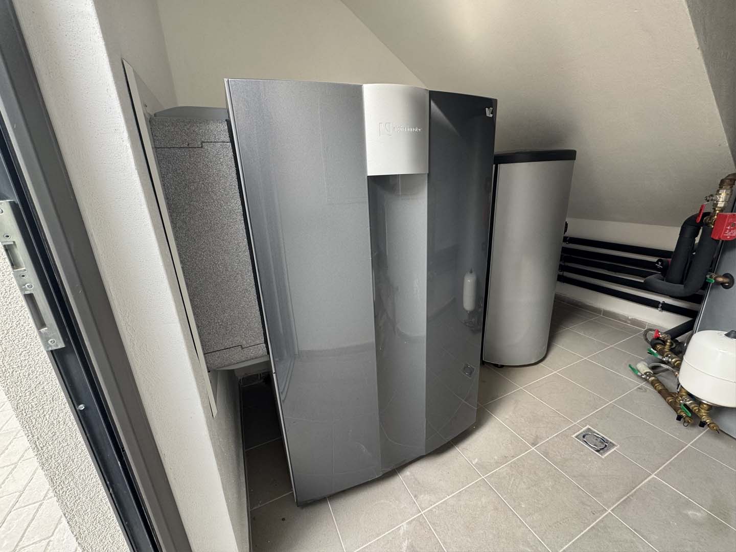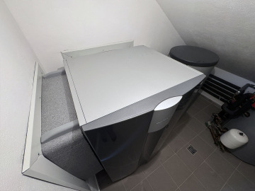 Systém zajišťuje vytápění prostřednictvím podlahového topení a zároveň ohřev teplé užitkové vody pro všechny tři bytové jednotky. Výsledkem je kompaktní a velmi tiché řešení vhodné zejména pro rekonstrukce, kde není prostor pro klasickou venkovní jednotku.